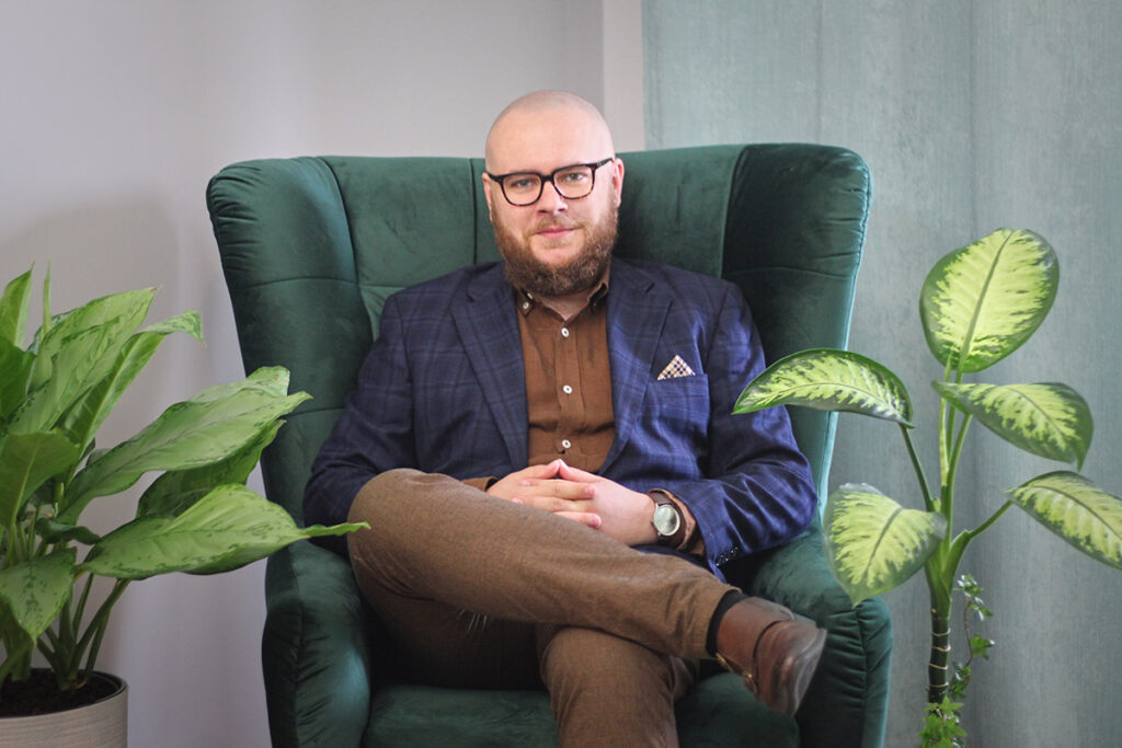 Psycholog (specjalność: psychologia kliniczna), psychoterapeuta psychodynamiczny w trakcie całościowego szkolenia (Krakowskie Centrum Psychodynamiczne) pod stałą superwizją indywidualną i grupową, członek nadzwyczajny Polskiego Towarzystwa Psychoterapii Psychodynamicznej. Ukończył studia z terapii ACT, aby posiadać doświadczenie i warsztat z tzw. „trzeciej fali” nurtu poznawczo-behawioralnego i – w razie potrzeby – sięgać po jej narzędzia. Licencjonowany specjalista Obrazkowego Testu Zawodów M. Achtnicha. Trener EEG Biofeedback pierwszego stopnia. Współpracował z prywatnym centrum zdrowia psychicznego „Akademia Dobrego Dnia” mieszczącym się w Głogowie. Aktualnie zajmuje się diagnozą oraz terapią w Poradni Psychologiczno-Pedagogicznej w Nowej Soli. Poza gabinetem: wykładowca (UTW w Polkowicach) oraz publicysta analizujący zjawiska społeczne i przekazy popkulturowe, tworzy treści dla youtube’owego kanału Wojna Idei oraz magazynu CD-Action.